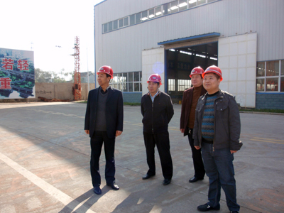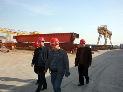 11月3日河南科技學院副院長王舜書一行三人蒞臨集團指導工作,河南省恒遠起重機械集團有限公司董事長朱國慶陪同客人參觀了生產車間;